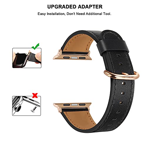 Tasikar Compatibile per Cinturino Apple Watch 49mm 45mm 44mm 42mm, Cinturini in Vera Pelle Compatibile con Apple Watch Ultra Series 8 7 6 5 4 3 2 1 SE - (Nero + Adattatore Rose gold)