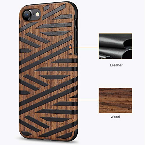 Tasikar Cover iPhone SE 2022/2020/Cover iPhone 8/Cover iPhone 7 Custodia Ibrida in Legno e TPU Compatibile confor iPhone SE (3rd Gen/2rd Gen) & iPhone 7/8 (Pelle & Legno)