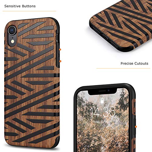 Tasikar Cover iPhone XR Custodia Ibrida in Legno e TPU Compatibile con iPhone XR (Pelle & Legno)