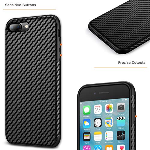 Tasikar Cover iPhone 7 Plus/Cover iPhone 8 Plus Custodia Morbida Sottile in Pelle di Carbonio Compatibile con iPhone 7 Plus & iPhone 8 Plus (Nero)