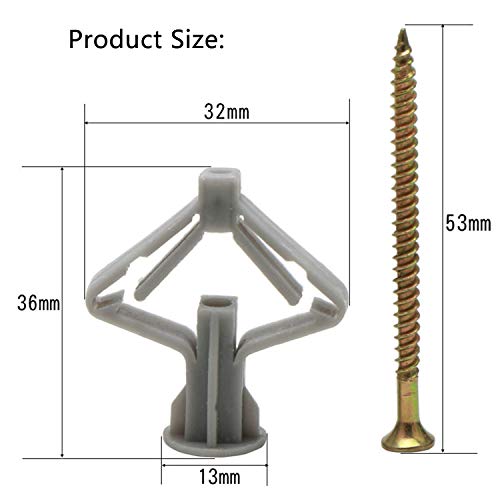 Kit di tasselli di ancoraggio, tasselli e viti a muro in cartongesso, Canna espandibile, Fissaggi a parete grezzi per cavità in cartongesso, grigio, 50 pezzi