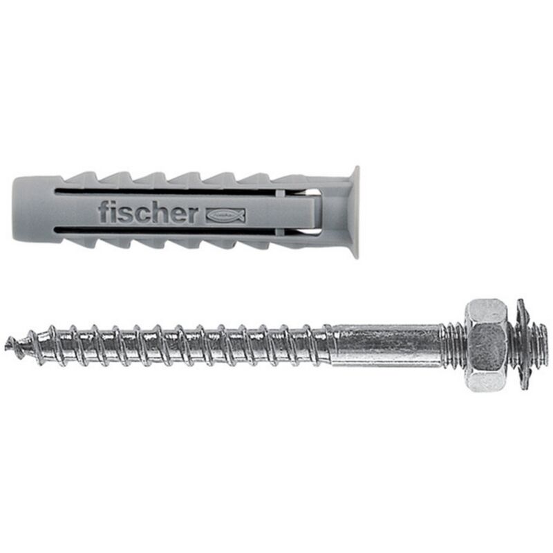 Tasselli Fischer SX 8 DV con viti in acciaio zincato a doppia filettatura M6 Per il fissaggio di collarini in acciaio zincato con attacco M6 Adatto per tutti i tipi di materiale sia compatti che forati Diametro punta 8 mm Confezione 50 pezzi Per maggiori info sui prodotti visita il nostro sito;