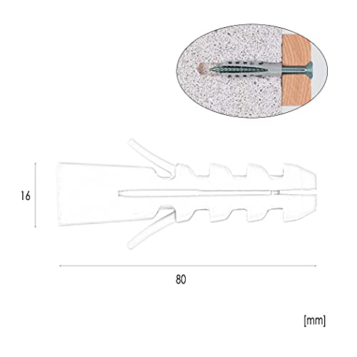 100 tasselli multiuso in nylon, 16 mm, senza colletto, 16 x 80 cm, colore grigio, per viti 12 - 14 mm
