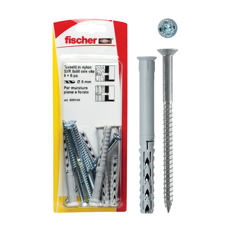 Dalla linea di articoli dedicati ai fissaggi e ancoraggi a marchio FISCHER, il kit di tasselli e viti prolungate in acciaio, con testa svasata a croce, SXR 10 x 120 Z K dal diametro di 10 mm, grazie alla ridotta profondità di posa, lo speciale design permette di utilizzare SXR con profondità di ancoraggio di appena 120 mm, garantendo quindi un risparmio di tempo. Permette l'utilizzo su numerosi materiali edili, garantendo al tempo stesso unfissaggio sicuro, grazie al dispositivo anti rotazione, in cui le quattro alette in prossimità del collare evitano la rotazione del tassello durantel'avvitamento. Inoltre gode dell'omologazione per applicazioni strutturali di facciate su muratura. Il kit di tasselli e viti a percussione SXR10 x 120 Z K Z K fischer è la scelta migliore per fissare, ad esempio, facciate, soffitti e sottostrutture per tetti in legno e in metallo, serramenti, porte e cancelli, quadri elettrici, canaline, porte tagliafuoco.