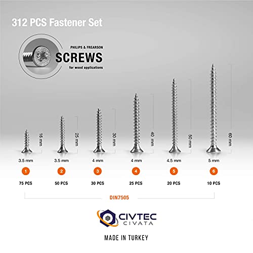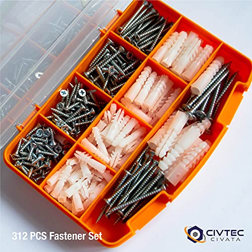 Set di 312 tasselli - M3.5, M4, M5 + M6, M7, M8, M10 tasselli + punta Pozidriv, set di viti per tasselli per l'uso in diversi settori - Kit di smistamento - DIN 7505
