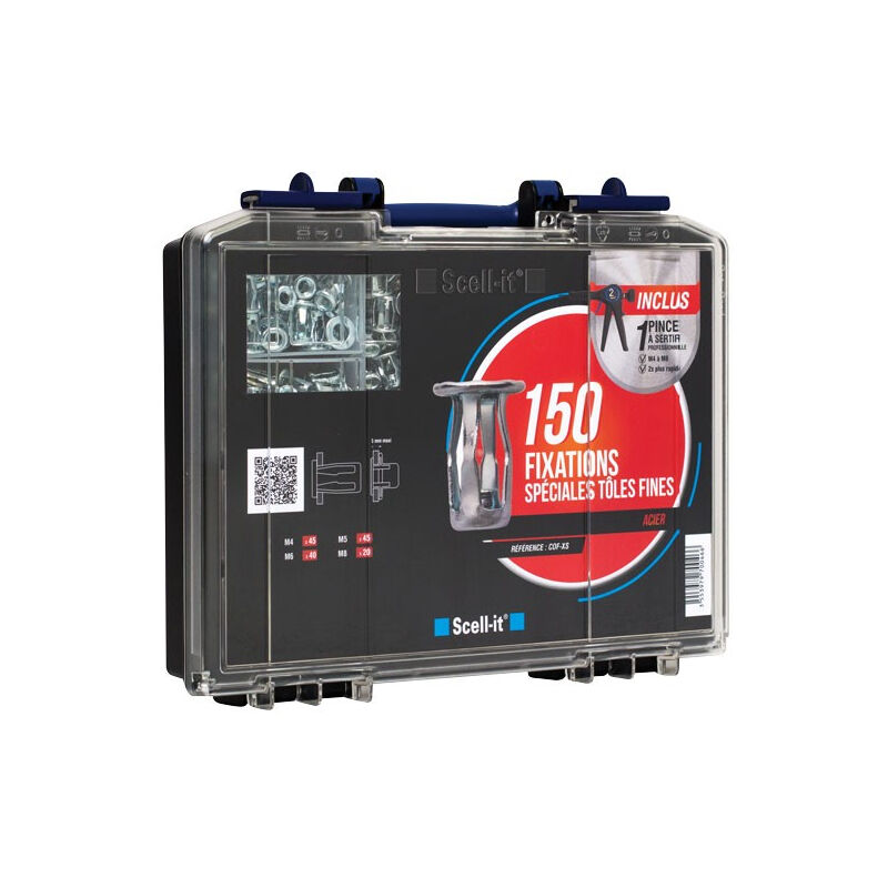 Dettagli: Il set comprende i seguenti articoli Scell-it: Ancoraggi per pareti sottili e lamiere Spyder XS Ampio raggio di serraggioElevata resistenza all'estrazione su pareti sottili. Ampia superficie di appoggio sul retro del supporto: migliora la tenuta, invece di una rondella di appoggio, e riduce le sollecitazioni applicate al supporto. Adatto per substrati fragili e flessibili: Plastiche fragili o fessurabili Fogli flessibili 1 x 2x strumento di crimpatura Due volte più veloce delle pinze a espansione convenzionali. Non è necessaria una vite per l'espansione: tassello ideale con capocorda a vite. Caratteristiche: 45 spyder xs M4 45 spie xs M5 40 spie xs M6 20 spie xs M8 1 pinza crimpatrice 2x M4-M8