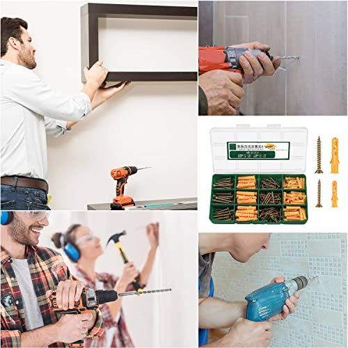 Materiale superbo: le viti autofilettanti sono realizzate in materiale di acciaio legato di alta qualità, resistente alla corrosione, alla ruggine, non facile da rompere e durevole. I tasselli da parete sono realizzati in materiale plastico eccezionale, non si danneggiano o si rompono facilmente, e i tasselli sono progettati con ritagli laterali per una migliore presa sul muro a secco.