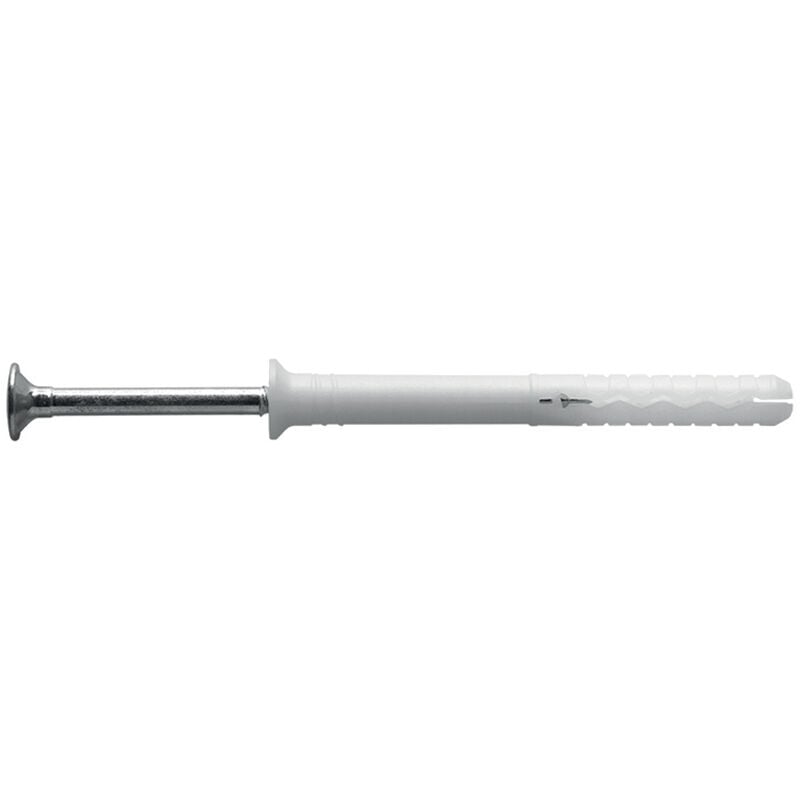 TASSELLO A BATTUTA PROLUNGATO IN NYLON CON VITE A CHIODO 100PZ MNA-S Ø6 MUNGO Caratteristiche: Installazione facile e veloce.Bordo svasato.La lunghezza maggiorata della zona d'espansione garantisce un ottima tenuta.Permette un alta resistenze alla percussione e una maggiore resistenza agli sforzi di taglio.Filetto speciale consente l'inserimento a percussione ed un facile svitamento.Tasselli prodotti con materie di primissima scelta, poliammide PA6.Fissaggio passante.Applicazioni interne (zincato) esterne e locali umidi (inox). Applicazioni: costruzioni in legno;