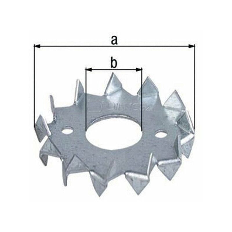 A doppia parte · fabbricati secondo din 1052 (EN912) · Materiale: Acciaio · Superficie: sendzimir zincato Altre caratteristiche tecniche: · Misura a Ø: 48mm · Dimensioni b Ø: 17mm · Materiale: Lamiera d'acciaio