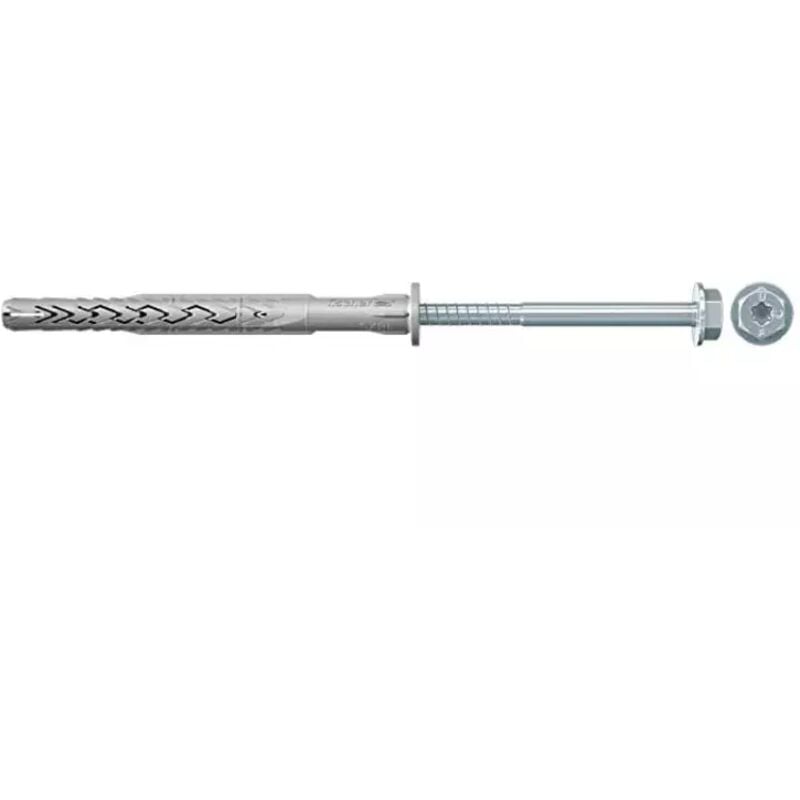 Tassello prolungato in nylon con marcatura CE con vite premontata a testa esagonale flangiata impronta torx. Diametro: 10 mm. Lunghezza: 100 mm Certificato anche per calcestruzzo cellulare: dispone di una tripla profondità di posa (50, 70 e 90 mm) per poter scegliere in funzione dell'intensità del carico Doppio stadio di espansione: grazie alla speciale geometria del tassello, le forze di ancoraggio si distribuiscono uniformemente sulle pareti del foro Approvazione ETA: permette l'utilizzo su numerosi materiali edili, garantendo al tempo stesso un fissaggio sicuro. Doppi dispositivi anti rotazione: le quattro alette in prossimità del collare e le due alette prolungate addizionali sul corpo espandente evitano la rotazione del tassello durante l'avvitamento Certificato per: Mattone semipieno (perforato verticalmente) in laterizio Calcestruzzo aerato (cellulare) Blocchi cavi in calcestruzzo alleggerito Mattone semipieno (perforato verticalmente) in silicato di calcio Blocchi con