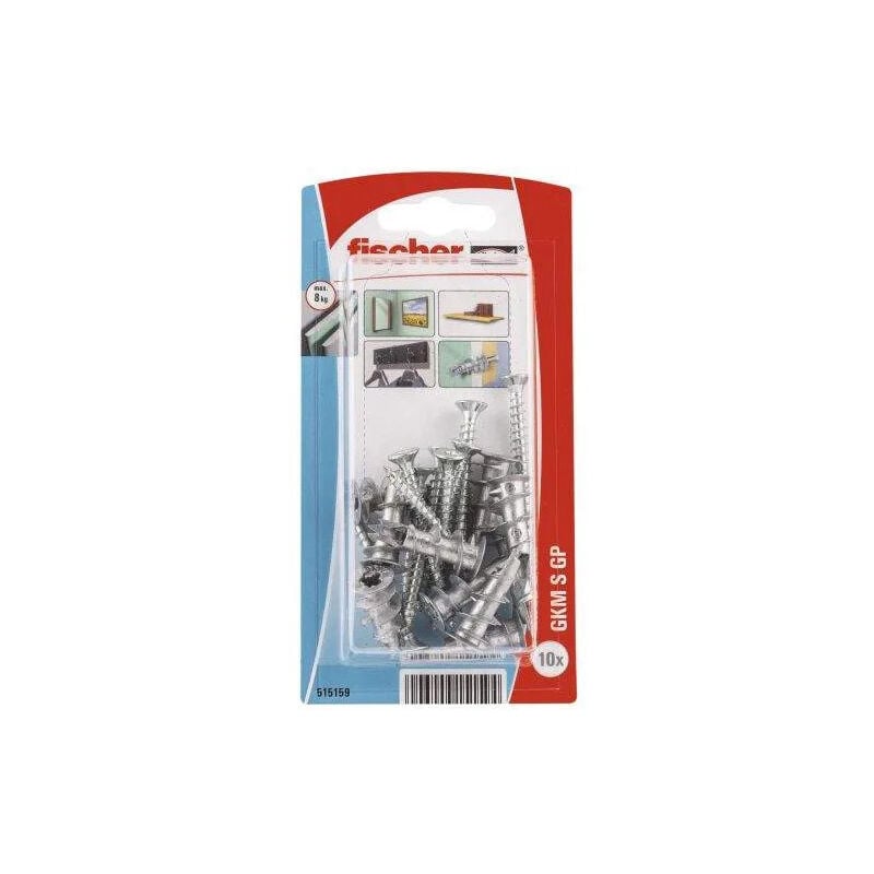 Il tassello per cartongesso GKM S K è fatto di metallo. Il tassello è adatto all'installazione nel muro. La spina viene installata a filo del substrato a mano o con un avvitatore elettrico. Per il cartongesso monostrato non è necessaria alcuna preforatura. Nelle lastre di gesso e nelle lastre doppie di gesso, è necessario preforare con una punta di Ø 8 mm. Il GKM S K è fornito completo di una vite per truciolare svasata. Questo lo rende universalmente adatto per il fissaggio sicuro e rapido di lampade, installazioni elettriche e complementi d'arredo. Caratteristiche principali La lunghezza ridotta del piolo permette un piccolo spazio dietro il pannello. Adatto per l'installazione in standby. Adatto per oggetti leggeri. Non è necessario forare nelle lastre di gesso semplicemente intonacate. Questo fa risparmiare tempo. Completo di vite corrispondente. Vantaggi Grazie alle sue caratteristiche del materiale, GKM può essere installato in cartongesso e fibra di legno e utilizzato con vari
