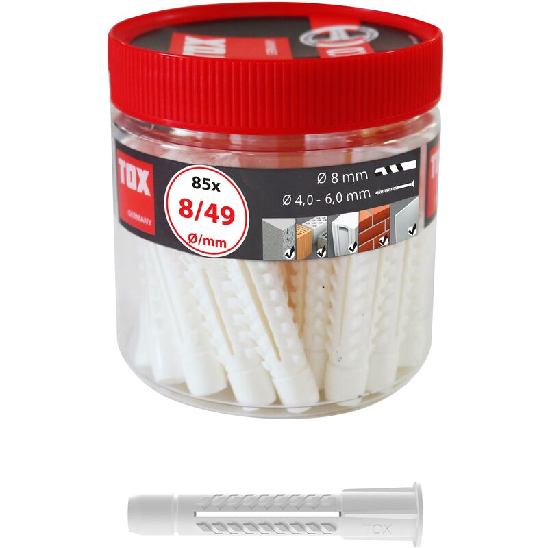 Caratteristiche e vantaggi Le viti possono essere avvitate molto facilmente grazie alla speciale geometria La calotta protegge la superficie ed evita che le viti scivolino più in profondità nel foro Mantenimento in quasi tutti i materiali da costruzione Si fissa o si espande in maniera automatica a seconda del materiale da costruzione Distribuzione uniforme della forza Dispositivo anti-rotazione Coperchio rimovibile per il montaggio con e senza passante Descrizione e campo di applicazione Ancoraggio universale per quasi tutti i materiali da costruzione Corpo dei perni diviso a 4 vie per una distribuzione uniforme della forza Ancoraggi sul collo del perno per evitare che il perno possa ruotare nel materiale da costruzione Lavorazione e montaggio Praticare un foro delle dimensioni del diametro del perno Fare un foro nel mattone perforato e nel cartongesso senza urtare con un movimento rotatorio in modo che il foro non diventi troppo grande o che i teli nel mattone perforato non si