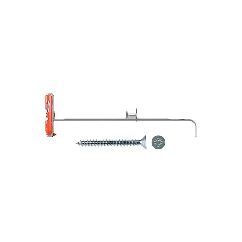 Fissaggio basculante in nylon, per carichi elevati su pannelli in cartongesso e fibra di gesso, pannelli in legno come pannelli in OSB, truciolare e fogli di compensato MDF. Componente rosso in nylon con alta percentuale di fibra di vetro. Foro da Mm. 10 ed elemento basculante da Mm. 39 di lunghezza. Per pannelli con spessore da Mm. 9,5-35. Completo di vite a testa svasata piana, impronta PZ da Mm. 5x50.