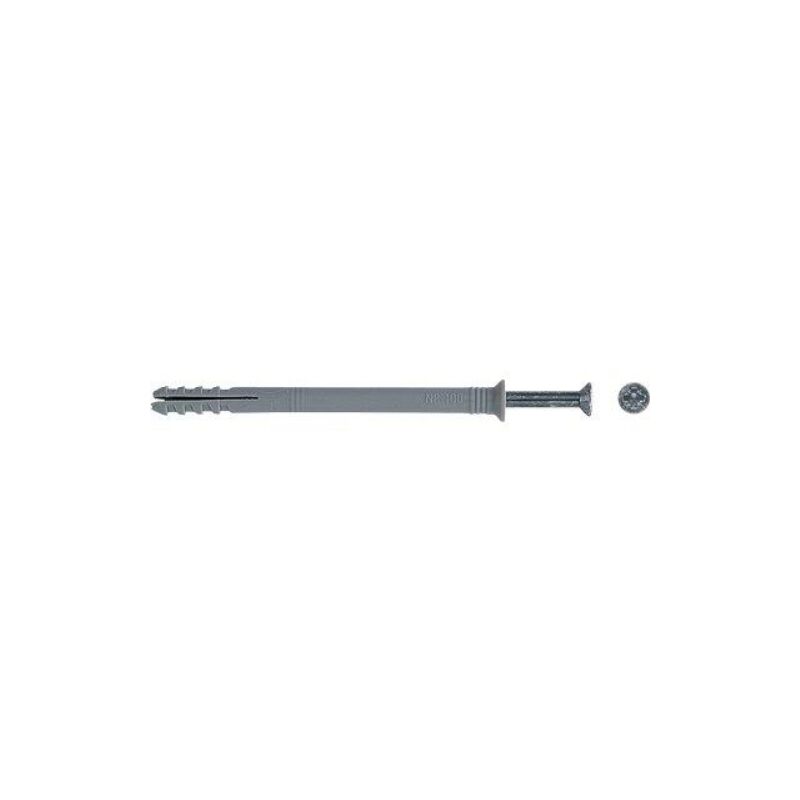 Tassello nylon prolungato n-f fischer Vite a chiodo n 6x 60/30 f cf=pz 100 per fissaggi leggeri a percussione di installazioni passanti su materiali pieni. ideali per sottostrutture in legno o metallo e profili. con bordo piatto e vite a chiodo premontata in acciaio zincato con testa piana svasata e impronta pz, che consente successive regolazioni e smontaggi.