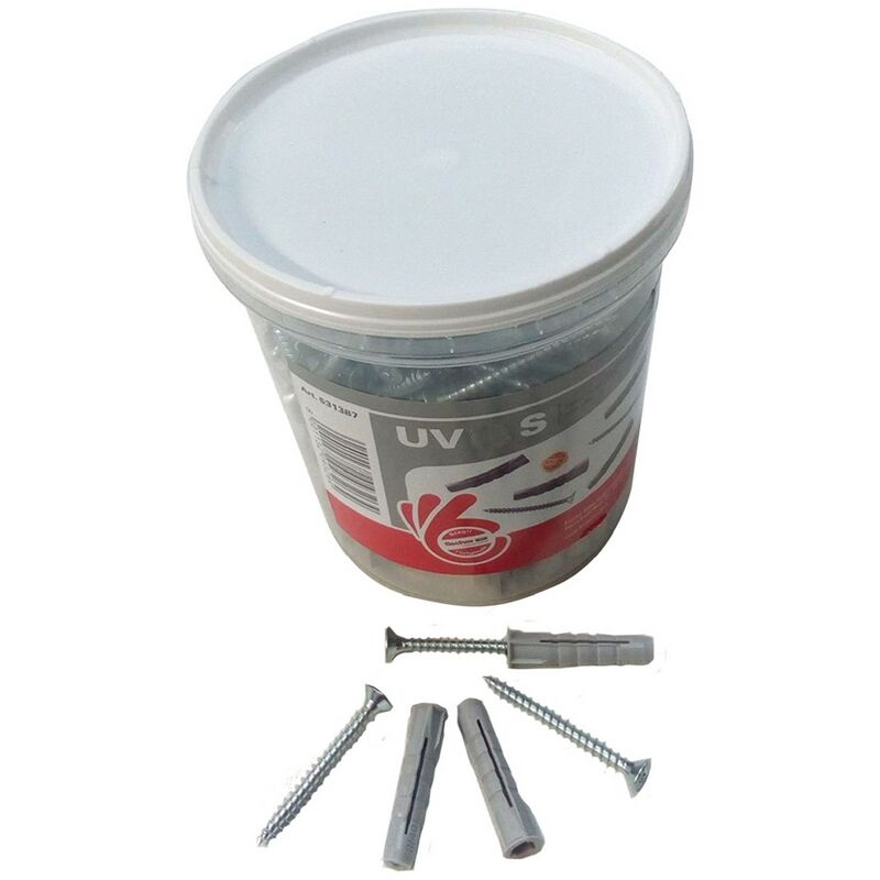 In barattolo plastico. completo di vite truciolare tsp impronta pz. per fissaggi universali su calcestruzzo, pietra naturale con struttura densa, blocco pieno in calcestruzzo alleggerito, mattoni pieni.ø 8 x 40 + vite 5 x 50mm (140 pz)