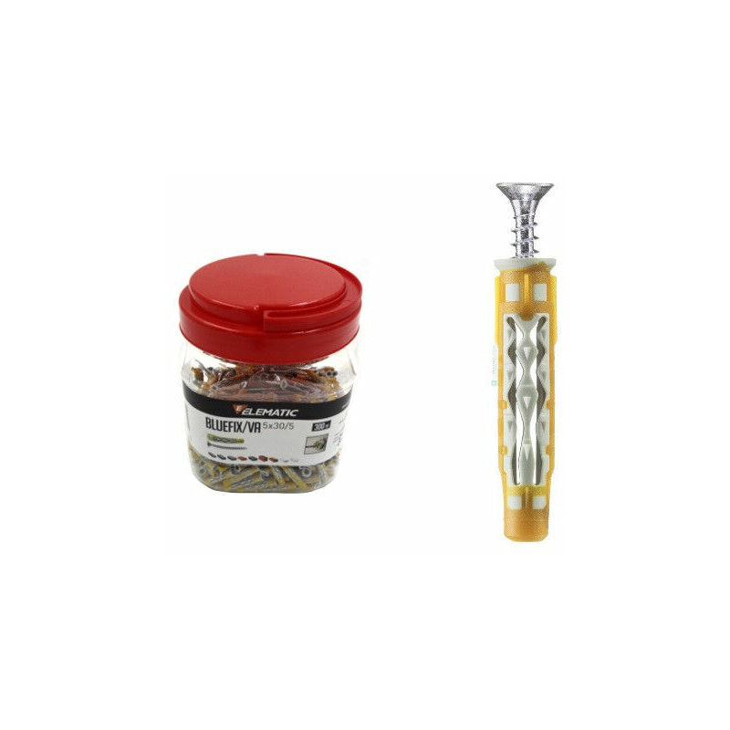 SECCHIELLO 300x ELEMATIC BLUEFIX 5x30 BLUEFIX / INNOVATIVO ANCORANTE BI-MATERIA ELEMATIC BLUEFIX è il primo ancorante plastico ad espansione bi-materia adatto ad installazioni su ogni tipo di supporto. La combinazione di due materiali nella fase di stampaggio del corpo plastico permette una vera e propria applicazione universale. L installazione è perfetta grazie alle alette anti-rotazione ad alta resistenza, senza danni sulla superficie del supporto con fissaggio passante o a filo parete. La tecnologia innovativa utilizzata permette l applicazione del tassello con diversi tipi e diametri di vite, con un bloccaggio perfetto della vite inserita. BLUEFIX è il primo ancorante universale ad altissima resistenza, testato anche in condizioni critiche e sismiche: infatti è stato incluso nel progetto di ricerca ITW per lo studio del comportamento sismico dei fissaggi con test su tavola vibrante. La sua performance elevata è ottenuta grazie ad una maggiore spinta di espansione, nel materiale