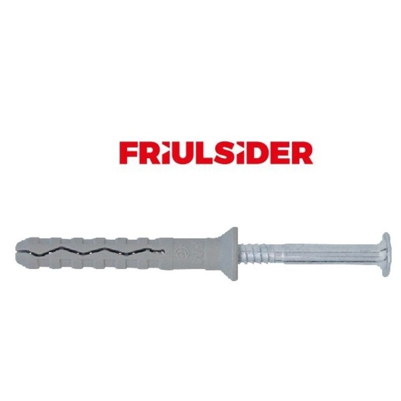 FRIULSIDER TASSELLO A BATTERE PREMONTATO SVASATO CON VITE ZINCATA POZIDRIVE TSS TASSELLO PREMONTATO IN NYLON CON BORDO SVASATO, Vite zincata bianca impronta Pozidrive tassello grigio. Codice Tassello Ø x L Vite Ø x L Sp. fissabile 62200b06040 6x40 3,8x45 10 62200b06060 6x60 3,8x65 30 62200b08060 8x60 4,8x65 20 62200b08080 8x80 4,8x85 40