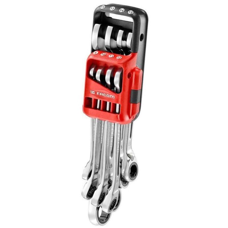 Falciatrici ad anello scricchiolante, set da 8-pc. Tasto a cuoio ultra-griglia: influenza sul paraurti sull'occhio + forcella non slittata. Non scivola sui dadi, offre un meccanismo a cricchetto di sicurezza ottimale, compatto e commutabile con leve. Una migliore accessibilità a durata dura da 5 ° (7,5 ° per 6 mm, 6 ° per 7, 8 e 9 mm). Aumento della produttività Inclinazione Eye and Fork: Dimensioni metriche di 15 °: versione da 6 a 41 mm: seta gloss cromo