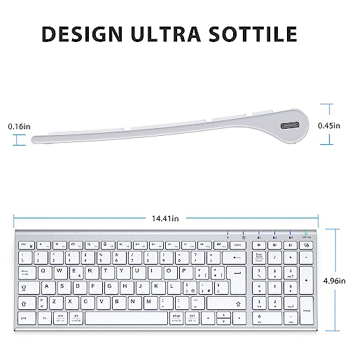 Tastiera Bluetooth, iClever Tastiera Ricaricabile Multi-Dispositivo Bluetooth 5.1con Connessione Stabile per Mac OS, Android, Windows (Silver)
