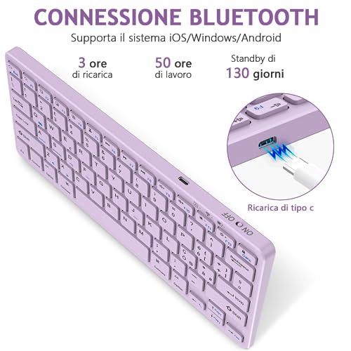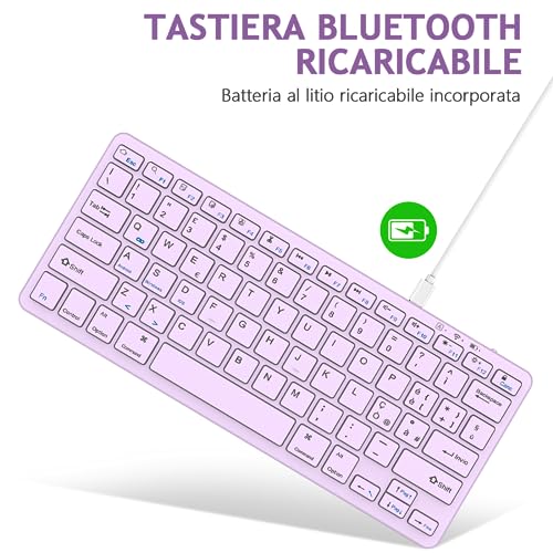 Tastiera Bluetooth per iPad, compatibile con iPad 10.2/9.7, iPad Pro 11/iPad Pro 12.9, iPad Air/iPad Mini/iPhone, tastiera wireless per Windows, iOS, Android,Viola