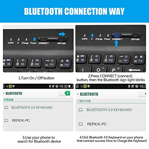 【Tastiera Bluetooth per telefono 2 in 1】 - Questo elegante custodia per custodia folio 2 in 1 + design della tastiera Bluetooth 3.0 rimovibile è progettato per supportare il tuo cellulare a mani libere in modo da poter concentrarti sul lavoro, leggere, guardare video, scrivere come sul normale computer portatile . Inoltre, la custodia protettiva protegge il tuo cellulare da graffi e rotture.