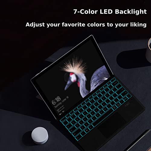 Tastiera Bluetooth Ultra Sottile con Touchpad,Tastiera Bluetooth Wireless per Surface Pro 7/6/5/4/3,La tastiera americana QWERTY,con 7 Colori Retroilluminata a LED,Batteria Ricaricabile, Nera