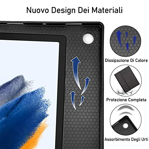 Tastiera Custodia per Samsung Galaxy Tab A8 10.5 Pollici 2022 (SM-X200/X205/X207),Layout Italiano,Rimovibile Magnetic Wireless Tastiera Bluetooth Cover con Tastiera con Supporto per Pencil-- Nero
