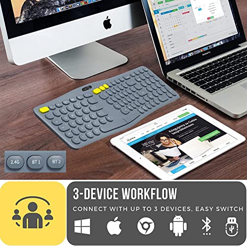 【Tastiera Bluetooth con connessione multi-dispositivi】: con il design wireless 2.4G e Bluetooth dual-channel (BT1 + BT2) di questa tastiera divisa ergonomica wireless, collega con 2.4G e due dispositivi Bluetooth 5.0 contemporaneamente e tramite l'interruttore della modalità pulsante, puoi passare rapidamente da un dispositivo all'altro (tieni premuto bt1/bt2 per circa 10 secondi per attivare il bluetooth)
