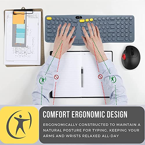【Tastiera ergonomica curva naturale】: l'onda resistente e il copritasto circolare e concavo si adattano perfettamente alla polpa delle dita, forniscono una posizione naturale della mano con meno sforzo o affaticamento. Questa tastiera ergonomica Bluetooth ti offre un'esperienza di digitazione fluida e ultra precisa senza compromessi in termini di velocità e precisione.