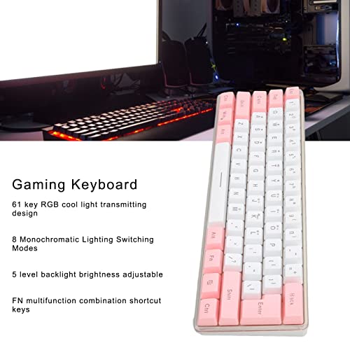 Tastiera da Gioco Cablata Al 60%, Tastiera RGB a 61 Tasti per PC, Tastiera da Gioco Meccanica Cablata per PC Compatta Tastiera da Gioco Meccanica per Computer(Bianco Rosa)