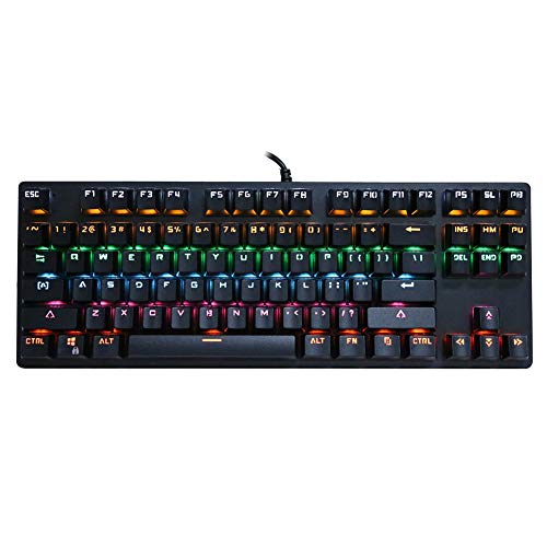 Tastiera da gioco meccanica, tastiera Computer cablata a 87 tasti con retroilluminazione a LED arcobaleno per giochi su PC/desktop/computer, copritasti mobili a forma di U(Black)