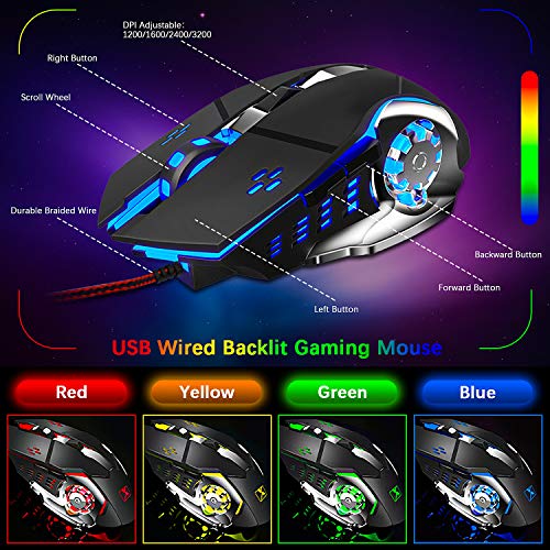 Tastiera da Gioco Wireless, Mouse, Cuffie e Tappetino per Mouse Set 4 in 1,16 Tastiera Ricaricabile con retroilluminazione RGB con Supporto per i Polsi, 7 Mouse retroilluminato e Cuffie Bluetooth RGB