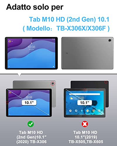 【Compatibilità】Tastiera con custodia adatta per Lenovo Tab M10 HD (2nd Gen) 10.1" 2020 (modello: TB-X306F/TB-X306X), non compatibile con Lenovo Tab M10 (1st Gen) 2019 TB-X505F/TB-X505L/TB-X605F/TB-X605L.
