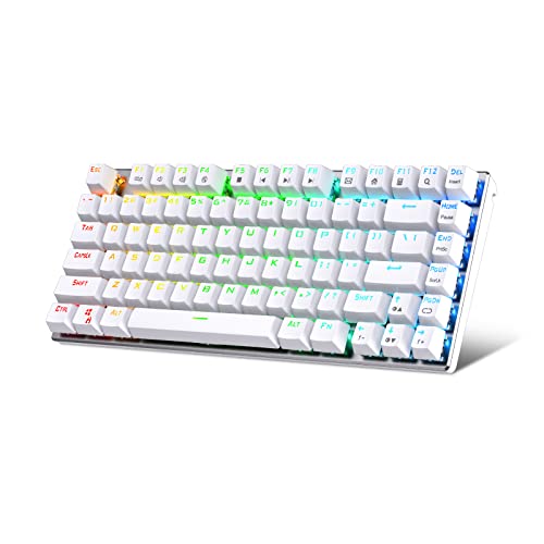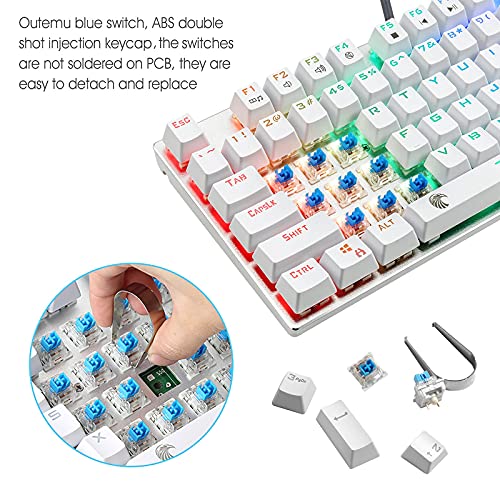 HUO JI RGB tastiera meccanica bianca compatta TKL Gaming LED retroilluminata ergonomica Clicky Anti-Ghosting 81 tasti piastra in alluminio tastiera modulare per giocatori e dattilografi Z-88 (bianco