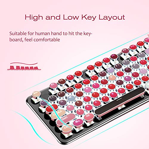 Tastiera meccanica da gioco, tastiera a rossetto cablata USB a 104 tasti con retro portachiavi rotondi punk e 26 LED bianchi retroilluminati, compatibile con PC, computer, laptop (interruttori blu)