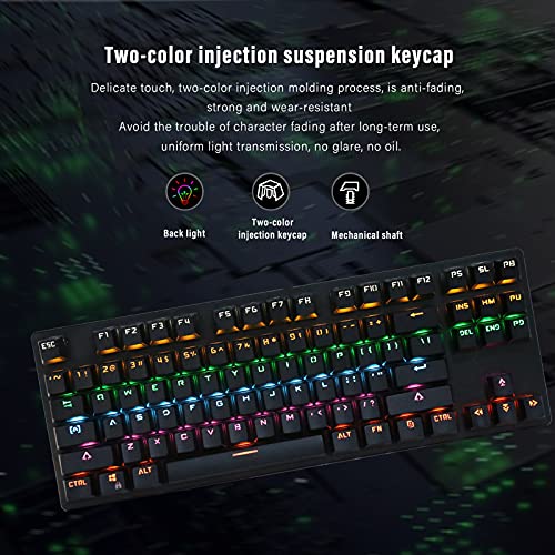 Tastiera Meccanica Nera/Blu, LED RGB e Tastiera Retroilluminata Tastiera per Computer Cablata USB, Tastiera Meccanica Cablata a 87 Tasti, Tastiera Meccanica da Gioco(Blu)