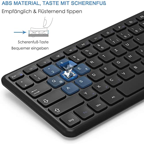 Tastiera e mouse con cavo, tastiera sottile Full Size con tastierino numerico, mouse cablato con 800/1200/1600 DPI, layout QWERTZ DE per Windows PC Laptop Desktop
