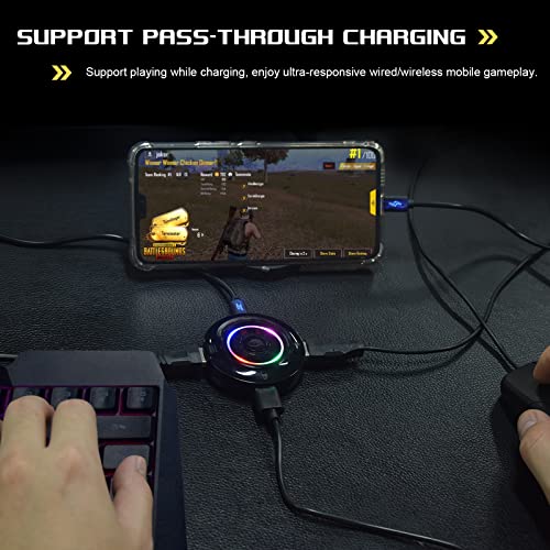 ⌨ Supporta la ricarica Pass-Through: Si collega alla porta Type-C del dispositivo Android e consente di giocare in modalità wireless ultra-reattiva (il cavo di ricarica del dispositivo Android non è incluso). L'effetto luce abbagliante crea un'atmosfera di gioco fresca e sorprendente per i giocatori che amano i giochi mobili.