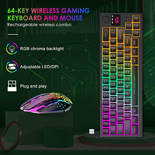 Tastiera e Mouse Wireless 2.4G, Poggiapolsi, Retroilluminazione Dinamica RGB Chroma, Tastiera e Mouse da Gioco Compatti al 60% Ricaricabili, Resistente agli Schizzi, Regolabile e DPI del Mice-Nero
