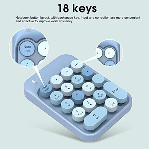 Tastiera numerica 2.4G, 18 Tasti Tastiera numerica Wireless Tastiera con Ricevitore USB Tastiera numerica silenziosa Tastiera numerica per Windows XP / Win7 / Win8 / Win10 / iOS(Blu)