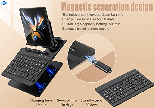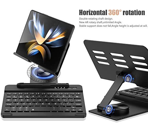 Tastiera per Samsung Z Fold 4 con portapenne, tastiera Bluetooth wireless pieghevole staccabile per Z Fold 3/Fold2, tablet tastiera girevole a 360 gradi con supporto in metallo (nero)