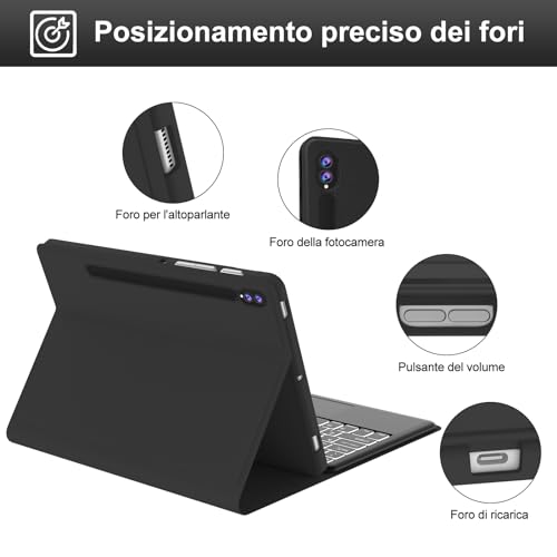 Tastiera Trackpad Samsung Galaxy Tab S9FE Plus 12.4" 2023 - Samsung Tab S9FE + Tastiera, Cover Tastiera Samsung tab S9 Plus, Italiano Tastiera Bluetooth Retroilluminata per Samsung Tab S9+, Nero