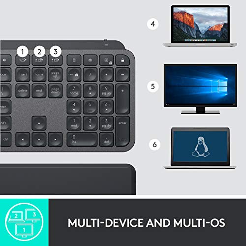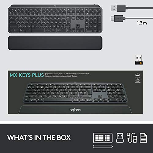 Tastiera wireless illuminata Logitech MX Keys Plus con poggiapolsi, controllo tattile della tastiera, Bluetooth, USB-C, Apple macOS, Microsoft Windows, Linux NL English QWERTY, grafite