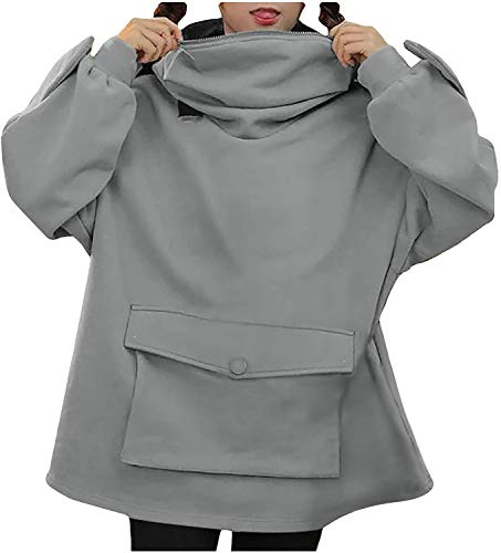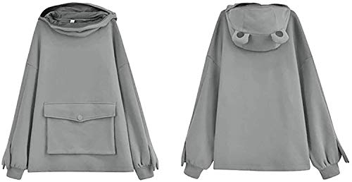 Tasty Life Felpa Con Cappuccio A Manica Lunga,Grazioso Pullover Con Rana,Pullover Ampio,Felpa Con Cappuccio Con Tasca Con Cerniera(Gray,S)