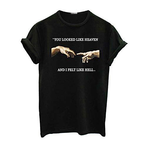 Tasty Life T-Shirt con Stampa da Donna T-Shirt Adam Michelangelo A Maniche Corte con Scollo Tondo Top con Stampa A Mano di Moda T-Shirt Slim Abbigliamento Casual Estivo Camicia(XXL,Black)