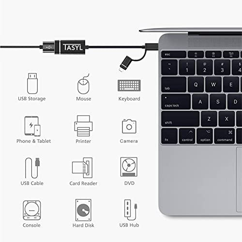 TASYL Adattatore USB 2 in 1 per iPhone iPad USB C Lightning Thunderbolt OTG Cavo adattatore USB 3.0 compatibile con Macbook Thunderbolt Surface Pro Keyboard Dongle MIDI;