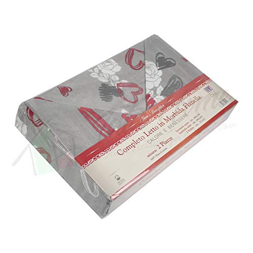 Tata Home Completo Letto Flanella Set Lenzuola Invernale Fantasia Cuori Misura Letto 1 Piazza Singolo Dis. 4 Rosso