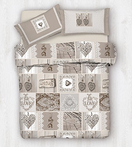 Tata Home Copripiumino Parure Shabby Misura 1 Piazza e Mezza 205x200 cm Federa 50x80 cm 100% Cotone Dis. 2 Beige