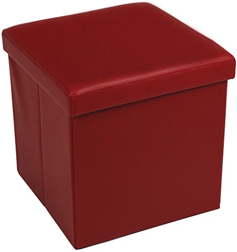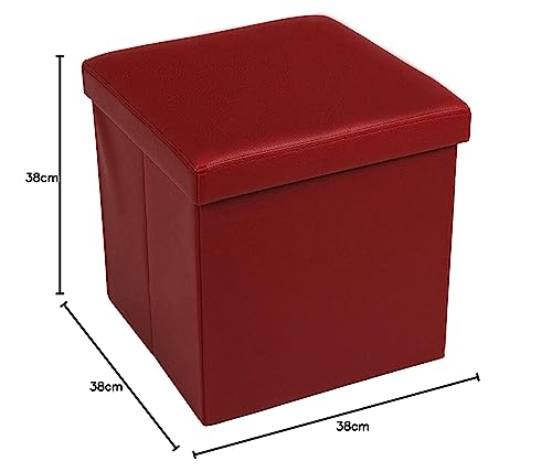 Tata Home Pouf Contenitore Scatola Sgabello Poggiapiedi Pieghevole Salvaspazio in Ecopelle cm 38x38x38 Eddy Colore Bordeaux