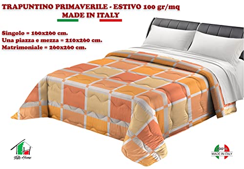 Tata Home Trapuntino Copriletto Trapuntato Primaverile Estivo 100 gr/mq Quilt Leggero Letto Una Piazza e Mezza 210x260 cm Fantasia Geometrica a Quadri Made in Italy Colore Arancio